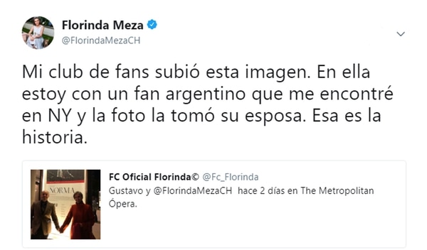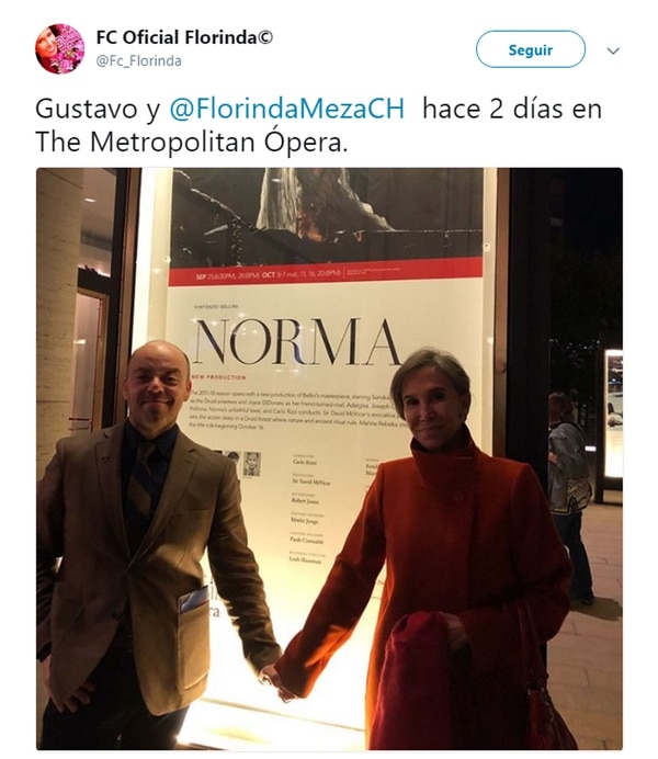 Todo comenzó cuando un club de fans de Doña Florinda publicó en Twitter una imagen de la actriz acompañada por un señor, en la puerta de un teatro de la ciudad de Nueva York, con el mensaje: “Gustavo y @FlorindaMezaCH hace 2 días en The Metropolitan Ópera”.