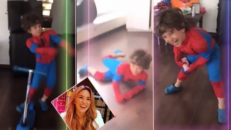 En esta oportunidad, la actriz y cantante compartió una secuencia de videos de Momo, con el objetivo de mostrar una coreografía de baile, pero el resultado fue un divertido blooper: el niño se bajó del monopatín, inventó un osado paso y terminó en el piso.