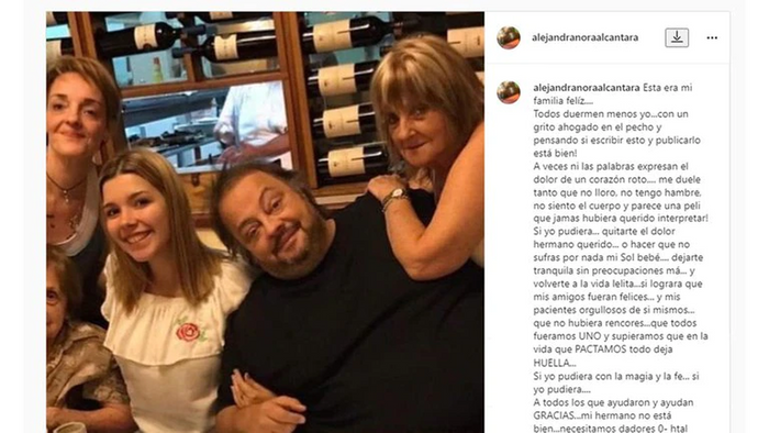 Su hermana, Alejandra escribió un conmovedor y desgarrador posteo: “Esta era mi familia feliz. Todos duermen menos yo, con un grito ahogado en el pecho y pensando si escribir esto y publicarlo está bien. A veces ni las palabras expresan el dolor de un corazón roto, me duele tanto que no lloro, no tengo hambre, no siento el cuerpo y parece una peli que jamás hubiera querido interpretar”.