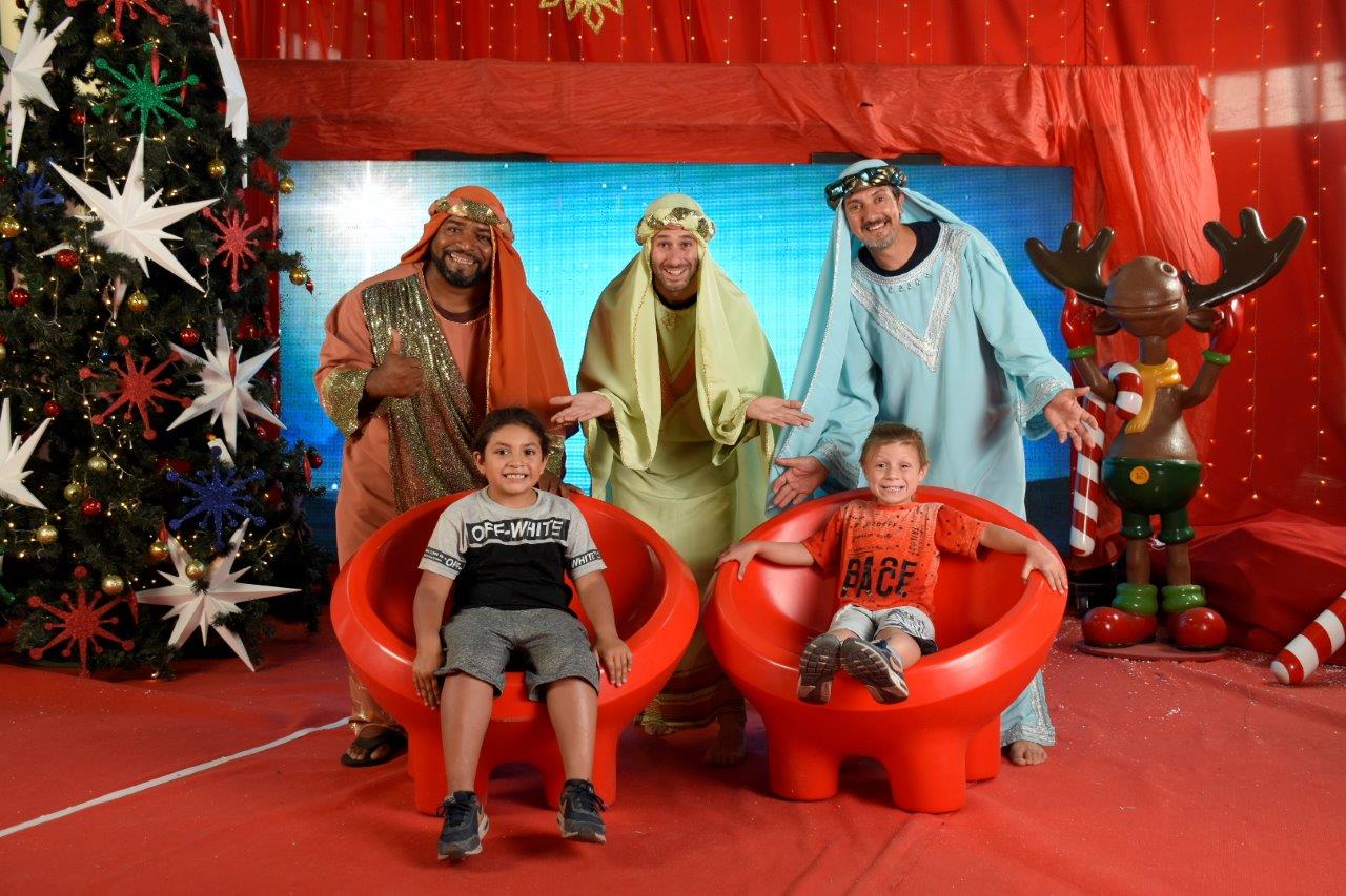 Los Reyes Magos llegaron en lancha al muelle Ministro Carranza, saludaron a las familias presentes y luego se dispusieron en uno de los galpones portuarios decorado con una atrayente estética para sacarse fotos con ellos y con el resto de los protagonistas del pesebre.