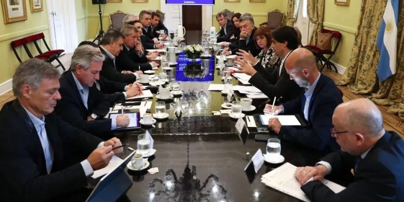 El jefe del Estado, por su parte, repitió en la reunión varios de los conceptos que había dicho más temprano en el astillero Tandanor en La Boca, cuando sostuvo que el modo en que transcurran los 59 días que faltan para las elecciones es su responsabilidad como presidente, “pero nunca depende sólo de un Gobierno”.