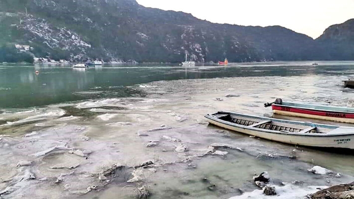 El frío en la zona austral de Chile provocó el congelamiento del mar en el fiordo de Tortel, en la región de Aysén, a 2243 kilómetros al sur de Santiago, y producto de las intensas nevadas la temperatura descendió a -14 grados.
