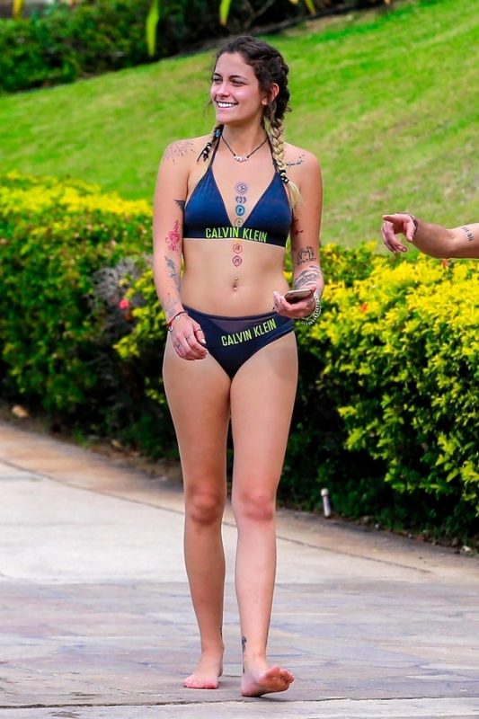 La hija mayor del fallecido Rey del Pop Michael Jackson lució una diminuta bikini de Calvin Klein y exhibió los casi cincuenta tatuajes que tiene en diferentes partes de su cuerpo.