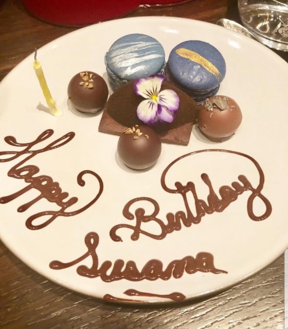Su eligió el elegante restaurante Baccarat Room de Nueva York para festejar su día especial. Estuvieron presentes Mecha y varios amigos entre los que se encontraba el productor teatral Danny Mañas con quien mantiene una amistad desde hace más de 30 años. De postre hubo chocolates, trufas y macarrons (típico de Francia).