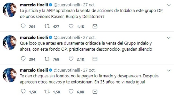 Siete años después, en noviembre de 2013, en plena guerra del gobierno de Cristina Fernández de Kirchner con el Grupo Clarín y luego de tomarse un año sabático de la televisión, Tinelli decidió venderle el 51% de Ideas del Sur al Grupo Indalo, que también adquiría el porcentaje que tenía Artear. La sociedad continuó hasta abril del año pasado, cuando Tinelli le vendió el 19% de las acciones que le quedaban de la productora a Cristóbal López, que comenzaba a controlar entonces el 100%. A partir de ese momento uno era el dueño, y el otro un conductor contratado.
