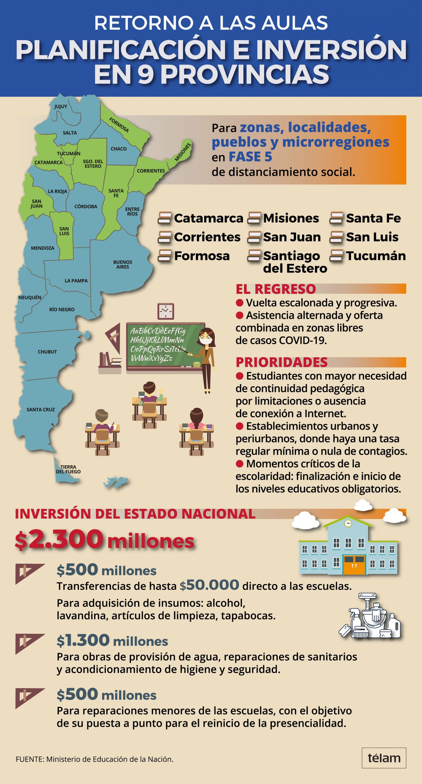 Las provincias que empezarán las clases en agosto: destinarán 2300 millones para obras en escuelas