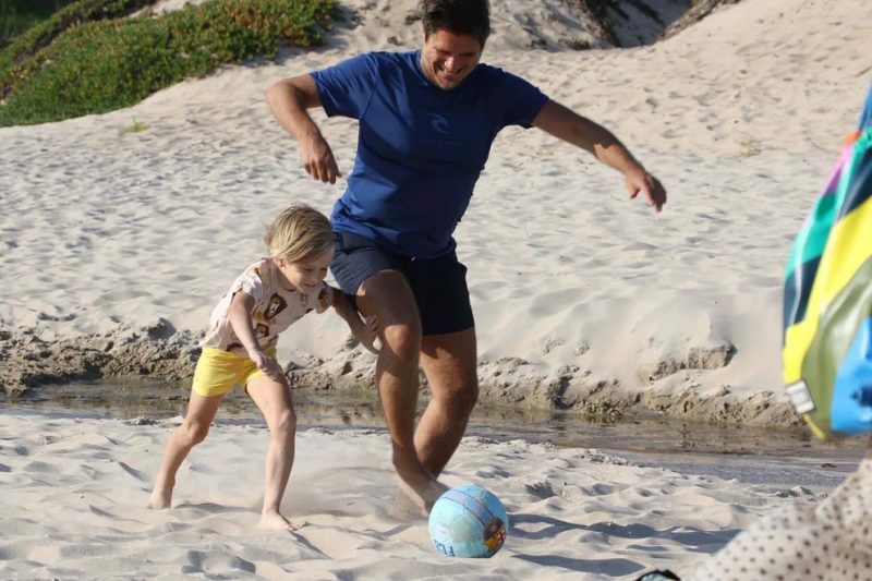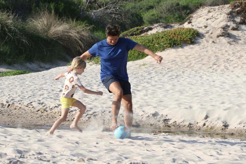 Y fue justamente mientras jugaba con su hijo menor que fue captado por la lente de Teleshow en las playas de José Ignacio, zona en la que alquilaron una casa para pasar sus días de vacaciones. Allí, padre e hijo se entretuvieron con una pelota de fútbol bajo el sol y sobre la arena, mientras las mujeres de la familia disfrutaban en la pileta. Es que a determinada hora del día, prefieren quedarse en su hogar y luego traslardarse hacia la playa.