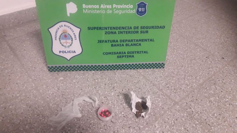 En el vehículo los uniformados hallaron un envoltorio con marihuana y siete pastillas marrones y rosas.