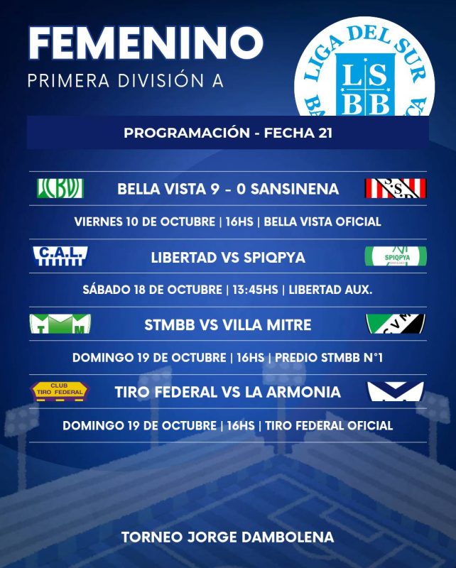 La Liga del Sur confirmó que este fin de semana se completará la fecha 21 del Torneo Único de Primera A, jornada que dio inicio la semana anterior y que debió suspenderse por las condiciones climáticas.