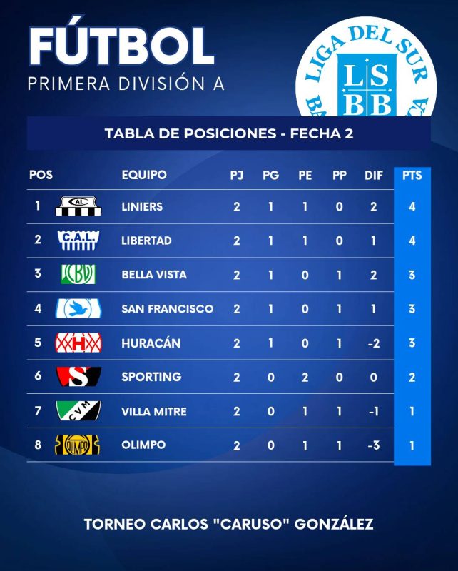 Liga del Sur: resultados de la fecha 2 de la Primera División y las tablas de posiciones