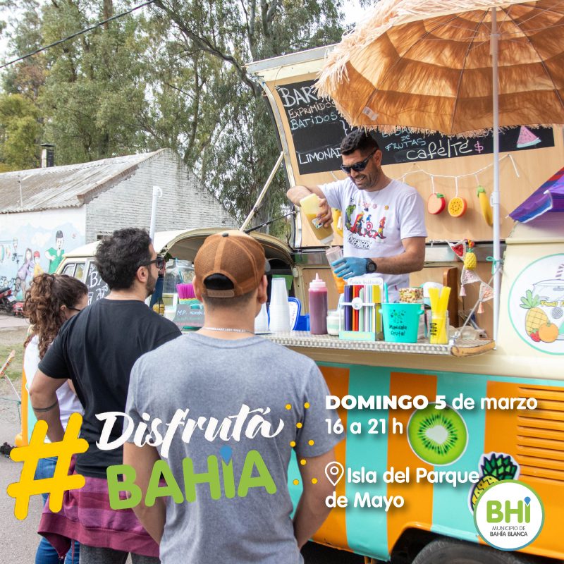 Además, como en cada Disfrutá Bahía, habrá food trucks con diversas ofertas gastronómicas, y la habitual feria de emprendedores con un paseo de productores de Villarino.