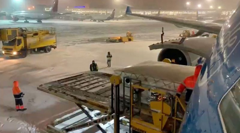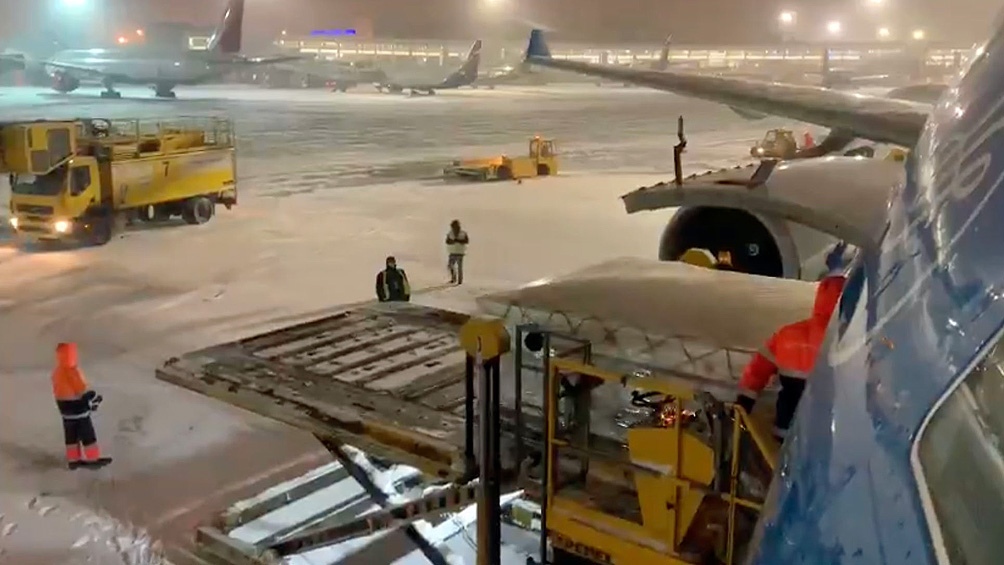 El temporal de nieve ocasionó congestión en el tráfico del aeropuerto y demoró las operaciones de carga, tanto de la aeronave argentina, como de otras compañías, bajo una temperatura ambiente de 15 grados bajo cero.