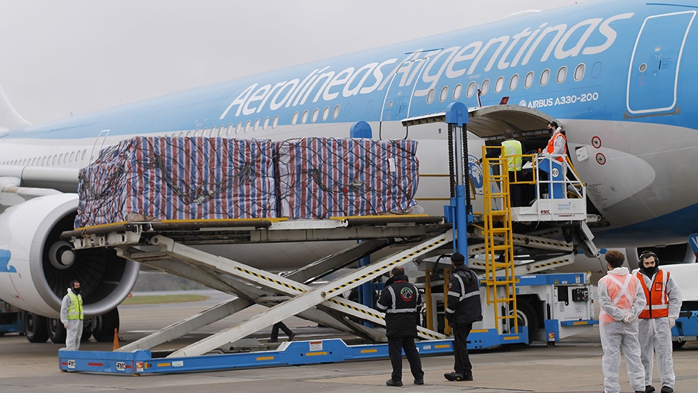 Un avión de Aerolíneas Argentinas llegará hoy a Buenos Aires con una carga de un millón de vacunas Sinopharm contra el coronavirus, procedentes de la República Popular China, mientras se espera para mañana el regreso de otra aeronave desde Moscú con más dosis de Sputnik V.