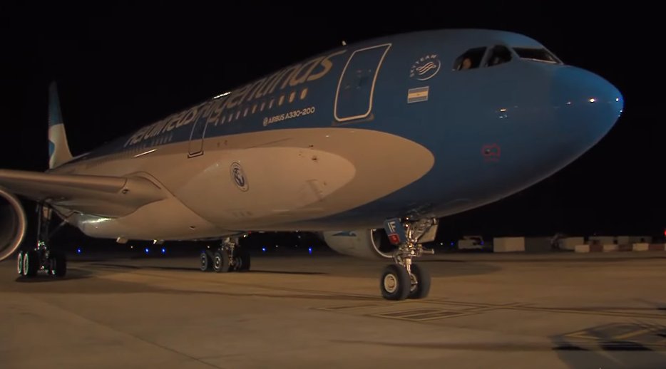 La aeronave Airbus 330-200, matrícula LV-GIF, con el número AR1081, tocó tierra a las 6,16, luego de haber despegado del aeropuerto internacional de Sheremetievo ayer a las 13.38 hora argentina (19.38 de Rusia), donde permaneció cinco horas para la estiba de la carga.