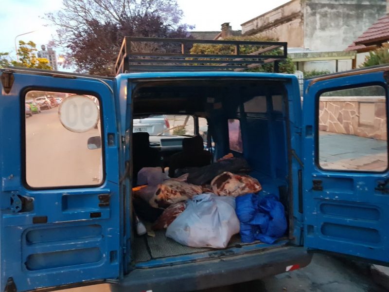 En el interior de la camioneta se secuestraron siete medias res vacunas de 20 a 25 kilos cada una, rastas de chorizo, morcillas, matambres, un cordero y una horma de queso cremoso, por un valor de 40.000 pesos.
