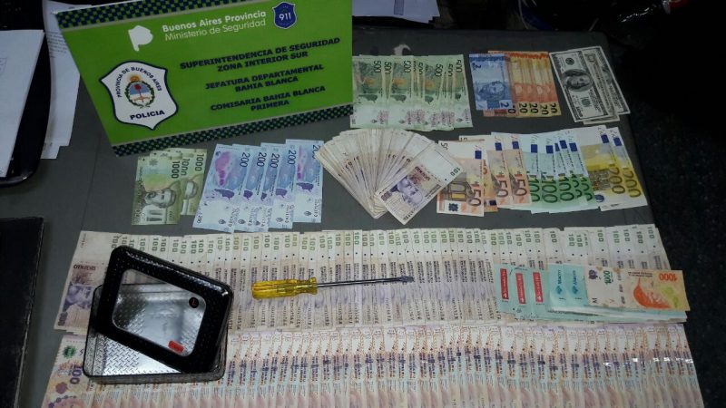 Se determinó que el acusado había sustraído 1.100 euros, 300 dólares, 92 reales, 24.900 pesos argentinos y 3.000 pesos chilenos y 5 cheques al portador, entre otros elementos.