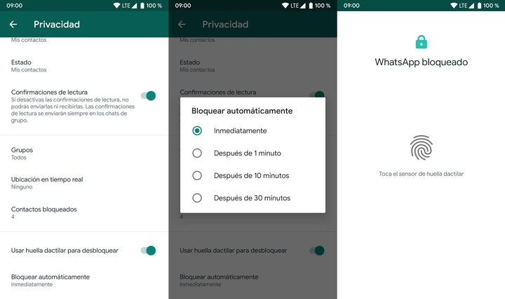 Entonces, activando esta función, los usuarios podrán decidir si quieren habilitar el uso de un sistema biométrico (huella o rostro) para evitar que terceros puedan tener acceso a sus conversaciones. Así, tan solo hay que elegir alguna de estas opciones temporales: inmediatamente, despuésde un minuto, después de cinco o luego de una hora.