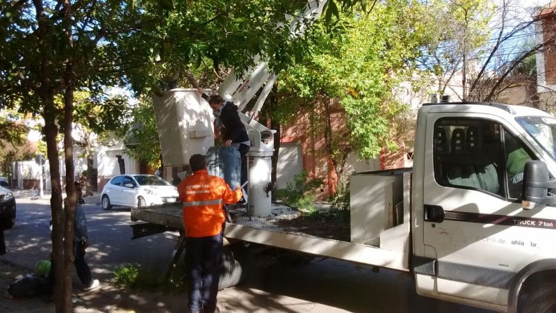 Personal de Parques Municipales y una guardia de Defensa Civil rescataron un gato que se encontraba desde hacía dos días en un árbol.