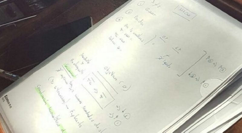 En los papeles que se le vieron a Lacunza se lee “en 10 días veremos” en el margen inferior derecho, lo que llamó más la atención en redes y al periodismo. En el resto de sus papeles, se ven fórmulas matemáticas y estimaciones de tipo de cambio, inflación, crecimiento y pobreza. El economista preparó esos papeles para presentarle al presidente de la Nación.