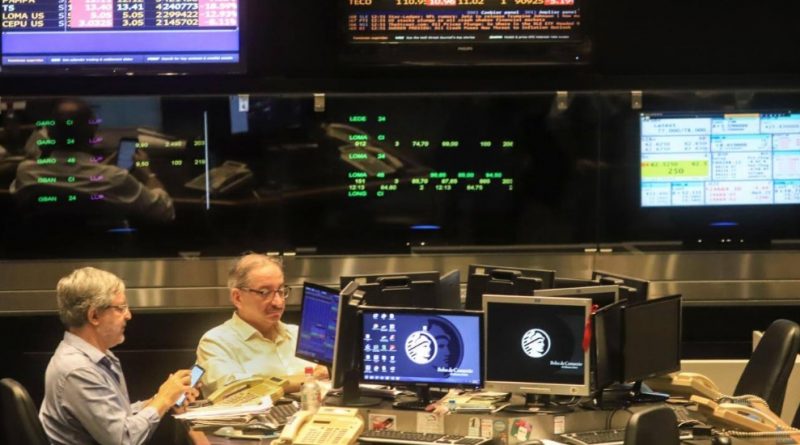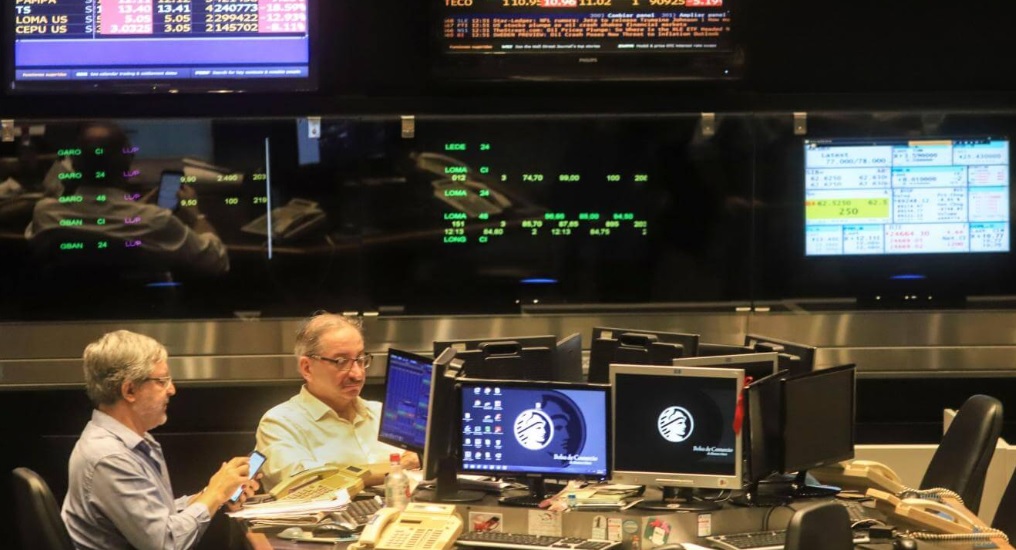 Las acciones líderes de la Bolsa de Comercio de Buenos Aires operaban con una baja del 0,37% este mediodía mientras los bonos en dólares emitidos bajo ley local se derrumbaban hasta 17,1% debido al reperfilamiento compulsivo decidido por el Gobierno para postergar pagos por unos U$S10.000 millones.