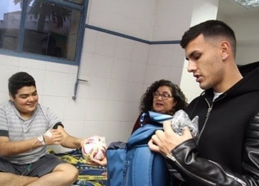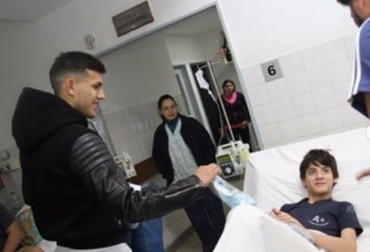 Algunos de los jugadores de fútbol pasaron por el hospital de niños a saludar a los pacientes.