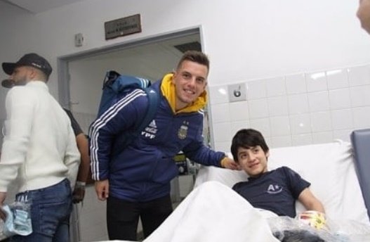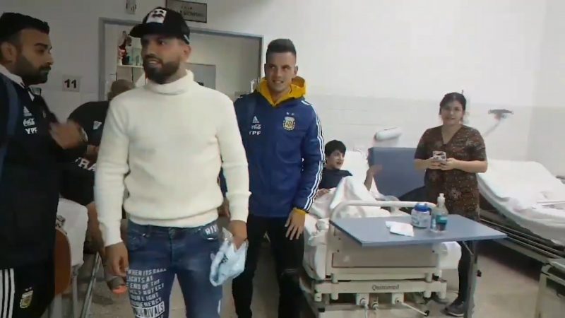 Sergio Agüero, Agustín Marchesín, Giovani Lo Celso, Rodrigo De Paul, Leandro Paredes, Walter Samuel y Roberto Ayala visitaron hoy el Hospital de Niños Gutiérrez: repartieron camisetas, pelotas, gorras, mochilas, y compartieron un lindo momento junto a los chicos.