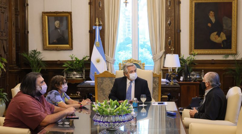 Previo a la reunión de apertura de la paritaria nacional docente, el presidente Alberto Fernández recibió hoy en Casa de Gobierno al secretario General de la Central de Trabajadores de la Argentina (CTA), Hugo Yasky; el secretario General del Sindicato Unificado de Trabajadores de la Educación de Buenos Aires (Suteba), Roberto Baradel, y la secretaria General de la Confederación de Trabajadores de la Educación (Ctera), Sonia Alesso.