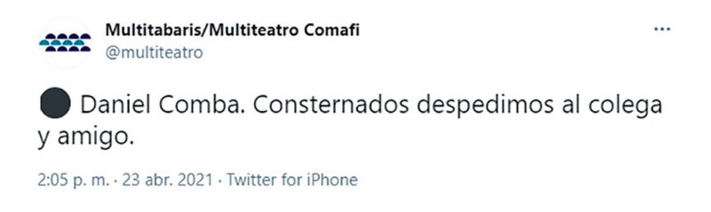 El también productor teatral Javier Faroni señaló: “El cielo tiene un caballero más. Placer de haberte cruzado en esta vida Daniel. ¡Teatrero y futbolero no podía fallar! QEPD”. Y el productor teatral Aldo Funes manifestó: “Con profundo dolor recibo la noticia de la muerte del empresario teatral Daniel Comba”.