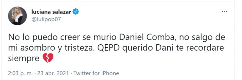 En las redes sociales, muchos famosos y colegas de Comba expresaron su tristeza por su partida. Floppy Tesouro escribió muy afligida: “Estoy muy triste por el fallecimiento de Dani Comba, mi primer productor teatral, quien siempre confió en mi artísticamente y me incentivó a crecer, mi amigo, un tipazo a quien voy a extrañar mucho, QEPD siempre en mí Dani”. Mientras que Luciana Salazar señaló: “No lo puedo creer se murió Daniel Comba, no salgo de mi asombro y tristeza. QEPD querido Dani, te recordaré siempre”.