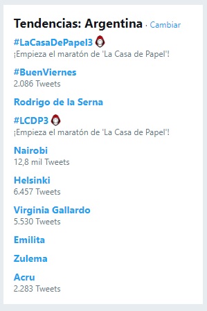 Los hashtags y frases que –según Twitter– son Temas del Momento (Trending Topics) en Argentina
