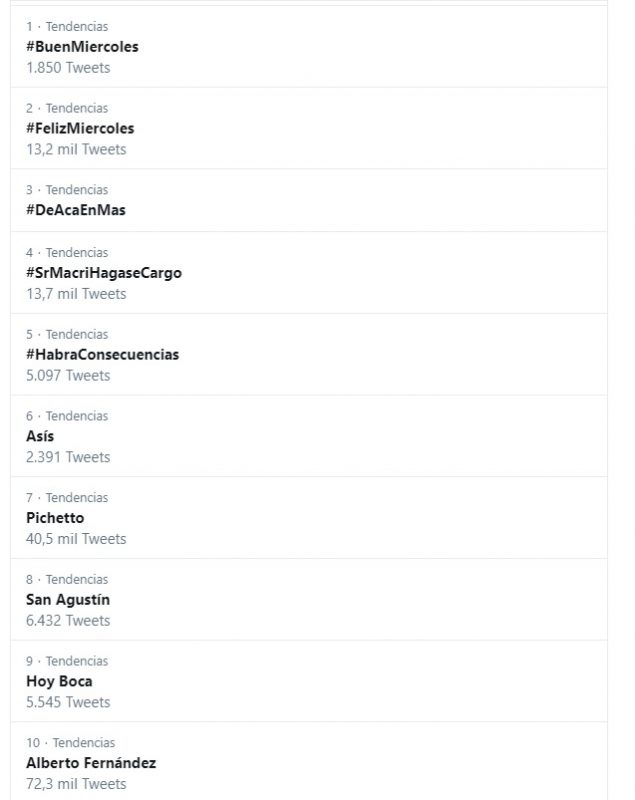 Los hashtags y frases que –según Twitter– son Temas del Momento (Trending Topics) en Argentina