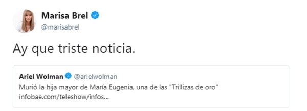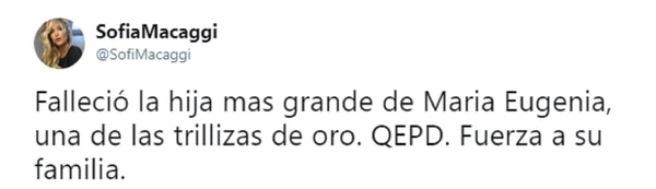 Los mensajes de apoyo en las redes sociales, a la “trilliza” María Eugenia, luego de la muerte de su hija