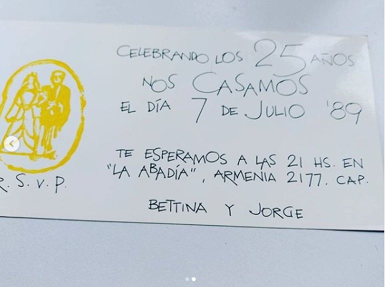 En el día de la fecha el conductor de “Basta de Todo” compartió con todos sus seguidores una imagen bastante retro en la que se lo puede observar junto a sus padres y en la que comentó: “Hoy se cumplen 30 años del casamiento de mis padres. Fue un 9 julio del ‘89 justo cuando cumplían 25 años juntos. 25 años hasta que la ley de divorcio y nuevo matrimonio promovida por el gobierno de Alfonsín llegó. Las invitaciónes las hizo a mano mi viejo y el dibujo de la pareja fue tallado en una goma de borrar luego usada como sello en cada invitación.