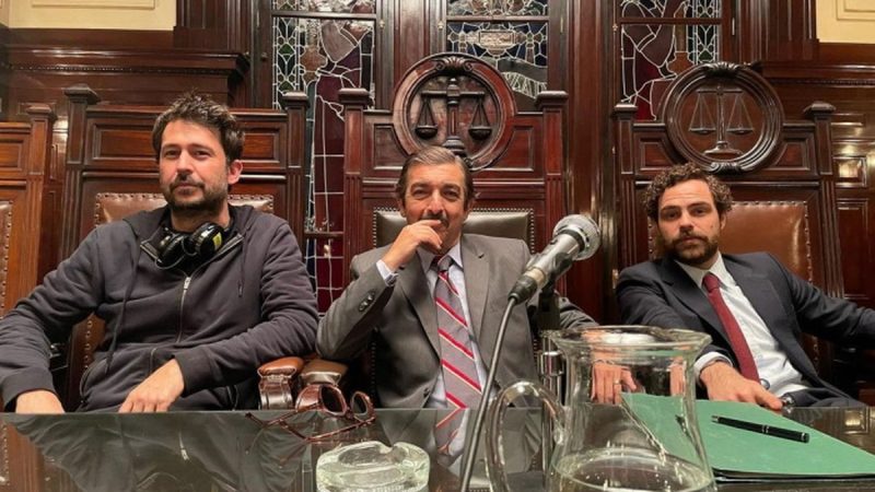 Santiago Mitre, Ricardo Darín y Peter Lanzani durante el rodaje de Argentina, 1985 que este domingo podría conseguir el tercer premio Oscar argentino. (Primicias ya)