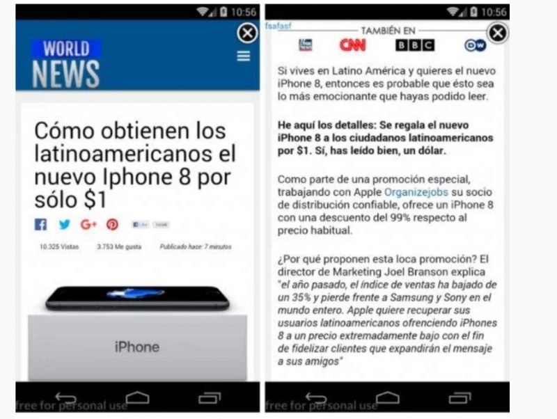 Las diversas estafas que prometen iPhones gratuitos, falsas alertas de malware en el equipo que redireccionan a aplicaciones potencialmente peligrosas, sitios de pornografía y apuestas deportivas, son algunos de los anuncios que copan de a minutos la pantalla del equipo. Además de la molestia que ocasionará al usuario la incesante cantidad de ventanas que se abrirán en su terminal, el consumo de red podría aumentar los costos por telefonía y reducir marcadamente la utilidad de la batería.