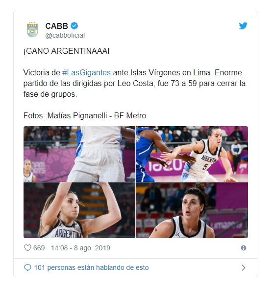 Luego del duro golpe que significó quedar eliminadas en la jornada de ayer por negligencia deportiva, las “Gigantes” pasaron rápidamente de página y vencieron 73 a 59 a Islas Vírgenes.