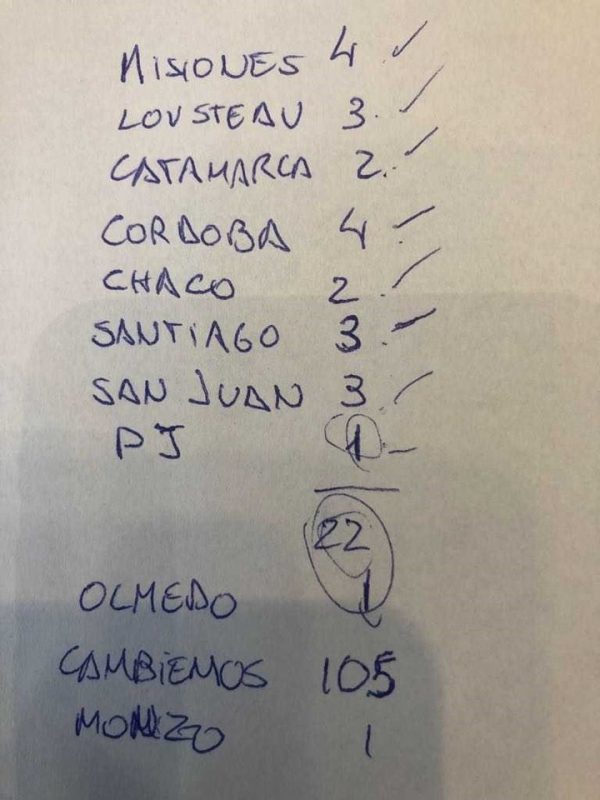 A modo de prueba matemática, en Gobierno mostraron a Clarín un papel con un punteo que tenían el día anterior a la sesión. Daba exactos 129. “Y en el recinto en un momento hubo 131. No fue ni es un problema de números. El kirchnerismo y la izquierda vieron que no podían frenar el proyecto y salieron a romper todo”, agregan.
