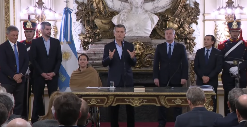 Por otra parte, Macri felicitó a Juan José Aranguren por el trabajo realizado en el ministerio de Energía. En ese aspecto también apuntó contra el kirchnerismo que implementó “la peor política energética”. Aranguren “tuvo que recibir como una carga pública y lidiar con todos los contratos del sistema energético caídos, incumplidos. Todo estaba patas para arriba. Íbamos a corte creciente de energía”, indicó.