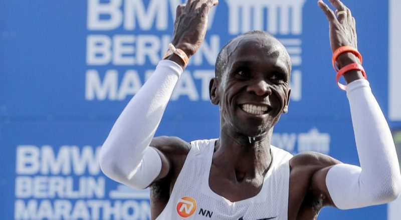 El keniata Eliud Kipchoge estableció hoy un nuevo récord mundial en el Maratón de Berlín al cruzar la línea de meta a las 2:01:39 horas, 1:18 minutos por debajo del mejor tiempo anterior establecido por su compatriota Dennis Kimetto, en 2014, también en la capital alemana.