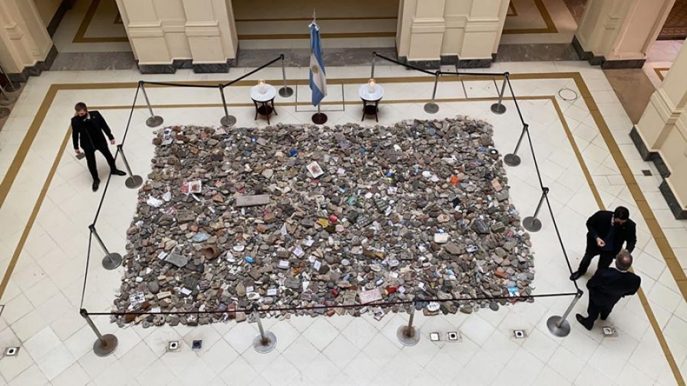 “En relación con la denominada “Marcha de las Piedras” que se realizó el lunes a la tarde en conmemoración de las víctimas del Covid-19, y finalizada la misma el gobierno nacional procedió a recoger las piedras que fueran depositadas con los nombres de las personas fallecidas”, agregaron las fuentes.