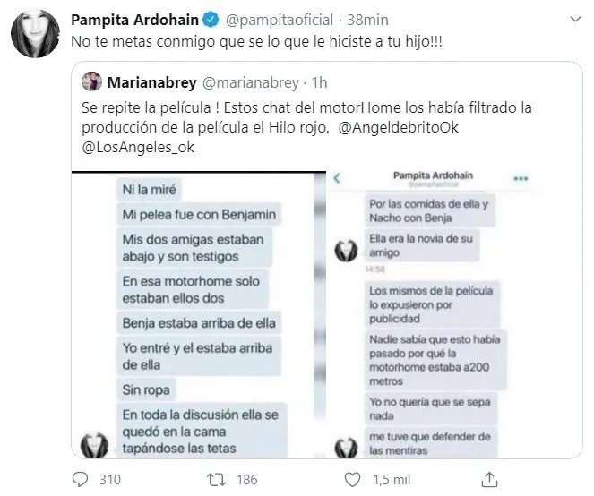 “No te metas conmigo que sé lo que le hiciste a tu hijo”, rezaba una publicación en el Twitter oficial de la esposa de Roberto García Moritán. Sin embargo, la presentadora no tardó en aclarar que su cuenta había sido hackeada.