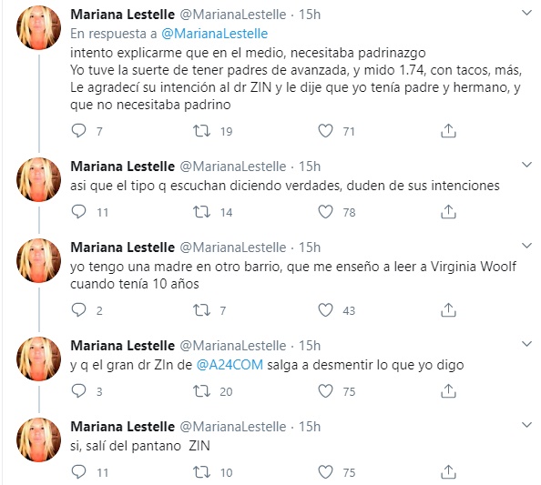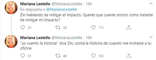 “‘Yo cuento la historia’ dice Zin. Contá la historia de cuando me invitaste a tu oficina. Estoy hablando de hace 20 años atrás. Claramente fue un acoso“, aseguró.