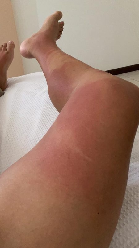 Mariano mostró algunas imágenes de las quemaduras de tercer grado que sufrió: “Es impresionante cómo tengo. Me expuse al sol, con protector solar y todo pero el sol está muy fuerte, me quedé dormido y cuando me desperté no podía mover las piernas. Las tenía prácticamente calcinadas, me hice mier…. Tengo quemaduras muy fuertes“.