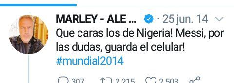 ¡Qué caras los de Nigeria! Messi, por las dudas guardá el celular”, escribió el conductor durante el Mundial del 2014.