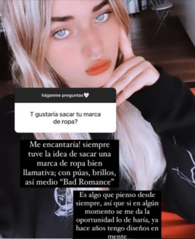 ¡Me encantaría! Siempre tuve la idea de sacar una marca de ropa bien llamativa, con púas, brillos así medio ‘Bad Romance’”, reveló Martita ante la pregunta de un seguidor en Instagram.