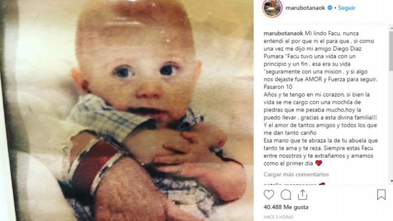 Pasaron diez años años y te tengo en mi corazón, si bien la vida se me cargó con una mochila de piedras que me pesaba mucho, hoy la puedo llevar gracias a esta divina familia!!! Y el amor de tantos amigos y todos los que me dan tanto cariño“, agregó Maru.