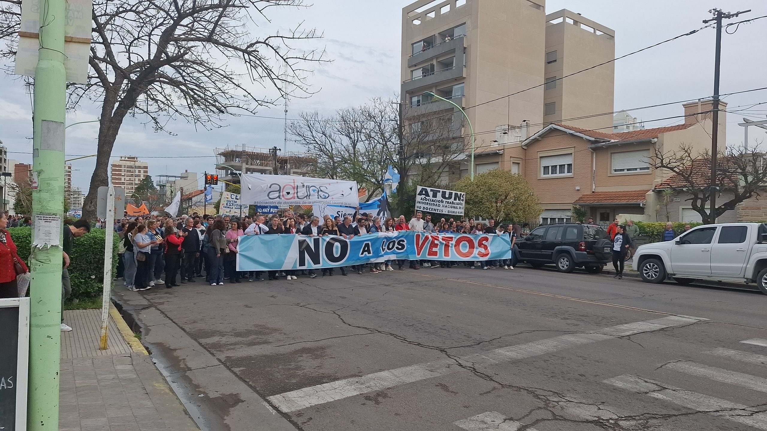 La manifestación que congregó a centenares de personas comenzó en la esquina de avenida Alem y 11 de Abril y culminó en el playón de la Universidad del Sur.