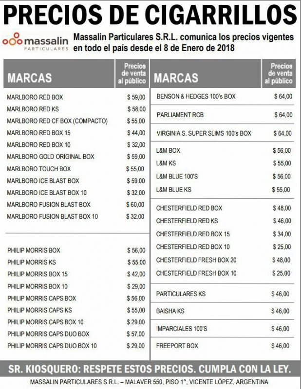 Como consecuencia de este nuevo aumento, los atados de cigarrillos tendrán un valor entre $2 y $3 más. De esta manera, el Marlboro Box de 20 unidades pasará de costar 59 pesos, en tanto que la versión KS costará 58 pesos. Por el box 15 habrá que pagar 44 pesos, y por el box 10 a 32 pesos.
