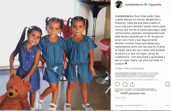 Sintiendo el dolor de la distancia, Matías les dedico a través de Instagram un fuerte mensaje a sus tres hijas: Charis, Bella y Francesca, frutos de su relación con Cinthia.
