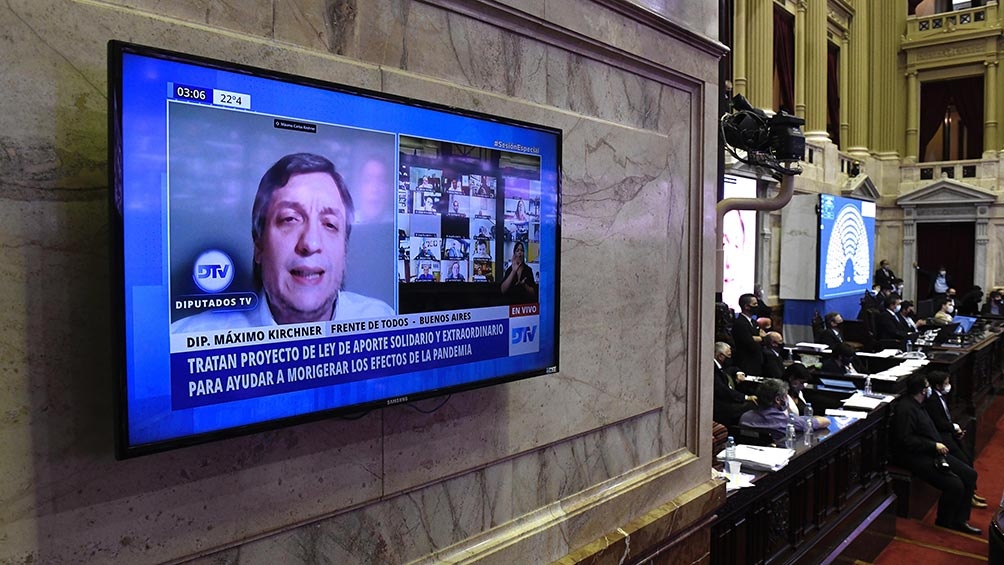 El presidente del bloque de Diputados del Frente de Todos, Máximo Kirchner, dijo que el Aporte Solidario de las Grandes Fortunas va a servir para “conseguir más vacunas para que el impacto de la llegada de esa segunda ola (de coronavirus) sea lo menor posible”.